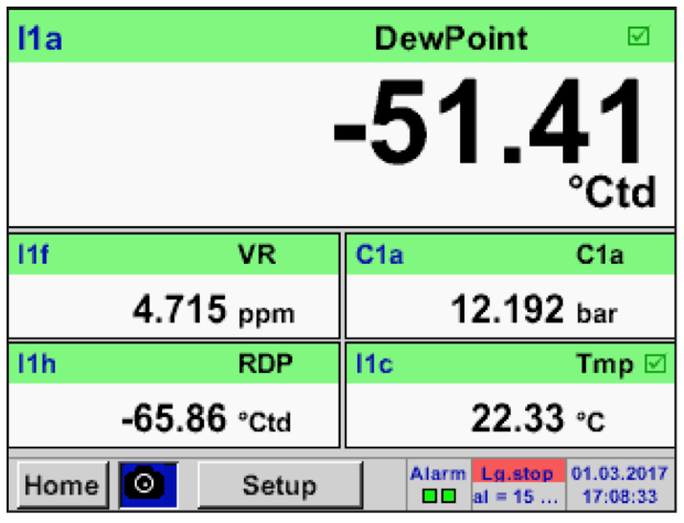| Measuring range | Dew Point -80...+50 °Ctd Humidity 0...100 % RH Temperature -20...70 °C Pressure 0…16 bar |