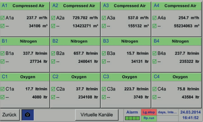 This display replaces the former evaluation of ordinary paper chart recorders and offers lots of advantages. The time axis can be moved by a finger slide.