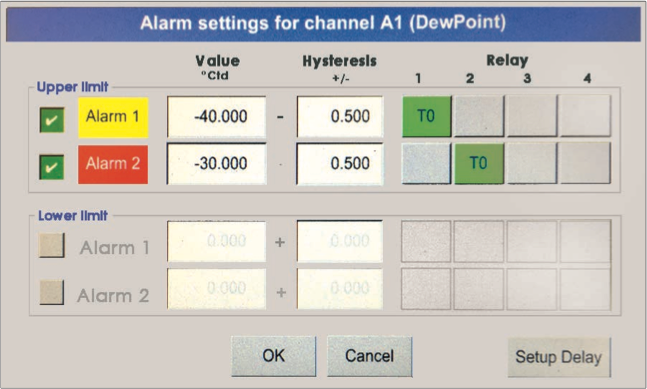 New: It is possible to set an alarm delay for each alarm relay so that the relay is only triggered after that period of time.