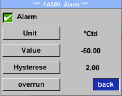 Alarm threshold value setting