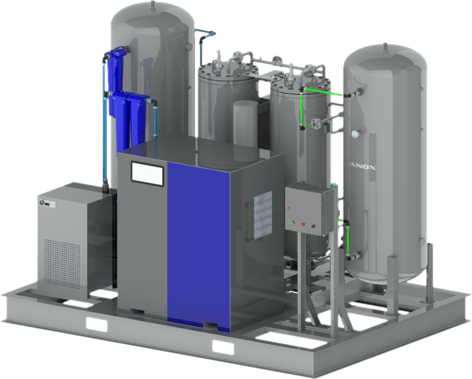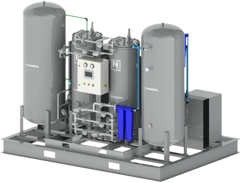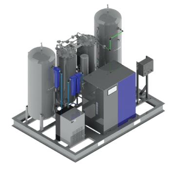 In line with our experience, we provides complete factory-engineered packaged solutions, from initial concept and CAD design to skid. N-SKID is a complete nitrogen generation system, including air compressor, air dryer, air filtration, piping, tanks and nitrogen generator – with all equipment conveniently assembled onto a compact and portable metal skid platform.