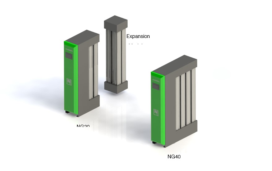 The NG series nitrogen generators minimizes obstructions to allow flows of nitrogen from few liters per minute to hundreds of cubic meter per hour. The modular structure can easily be upgraded at any time by simply adding modules to the generator. With NG you don’t need to buy nitrogen gas anymore, you can make it yourself on-site & on demand.