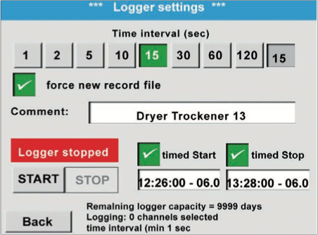 With the option “integrated data logger” the measured values are stored in the DS 400. The time interval can be freely set. Furthermore, there is the possibility to fix the starting time and the end time of the data recording. Read-out of the measured data via USB interface or via the optional Ethernet interface.