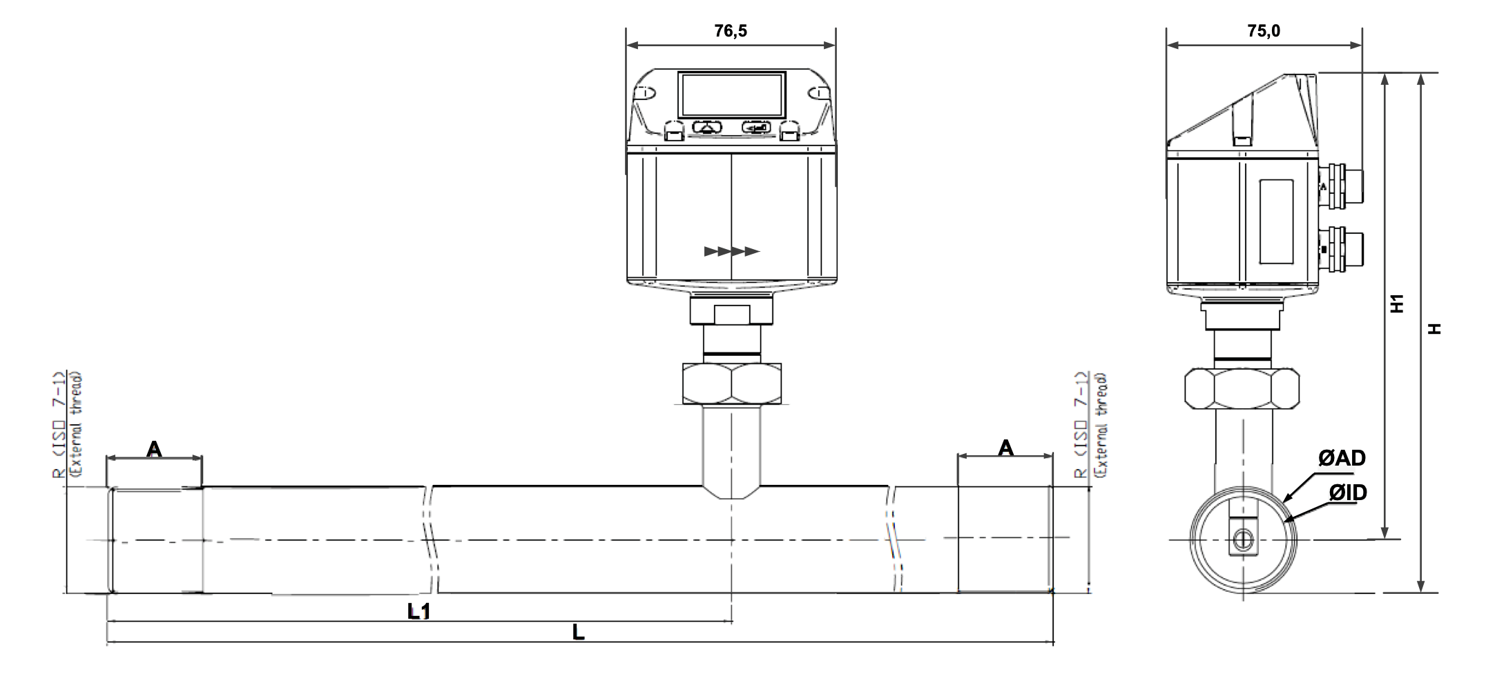 | Analogue output | 4...20 mA for m3/h or l/min |