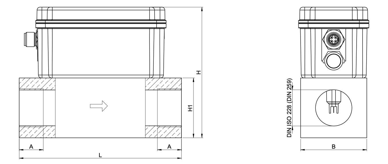 Connection | Measuring Range | L (mm) | B (mm) | H1 (mm) | H (mm) | A (mm) | ||