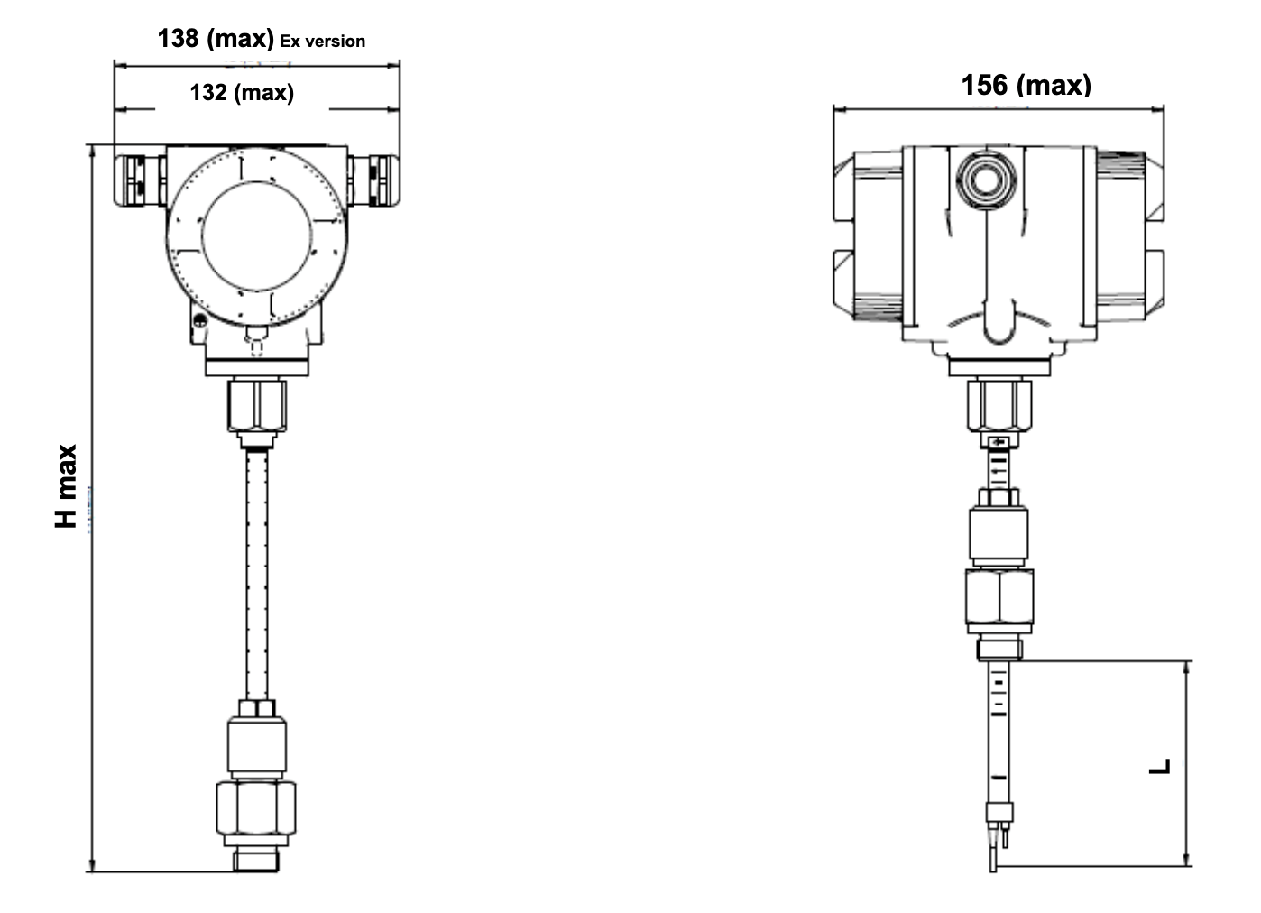 | Materials | Housing - Die-cast aluminium / Sensor probe - Stainless steel 316Ti (1.4571) |