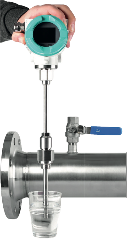 Contrary to the previously used bridge circuit the newly developed evaluation electronics records all measured values digitally. This allows very precise and fast measurements with a wide temperature range of up to 180 °C (resp. 350 °C). The measuring span is 1...1000 and VA 550 has an integrated Modbus output as a standard with which all parameters like Nm3/h, Nm3/min, kg/h, kg/min, cfm etc. can be transferred.